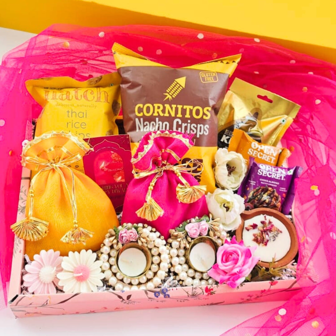 This Happiness Gift Hamper for Festive Joy is designed to go beyond gifting, it's about creating moments of warmth, celebration, and connection. Each element in this hamper is thoughtfully curated to symbolize prosperity, happiness, and togetherness during the festival of lights.