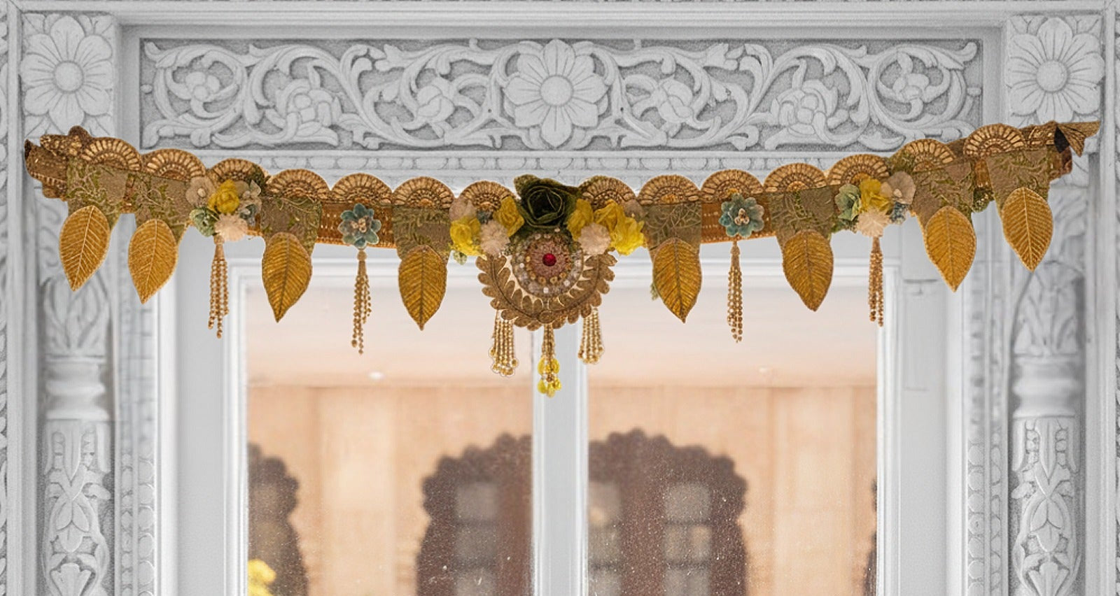 The Golden Leaves Toran is handmade beautiful Toran to make your space look festive, elegant & colorful.