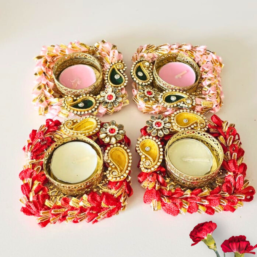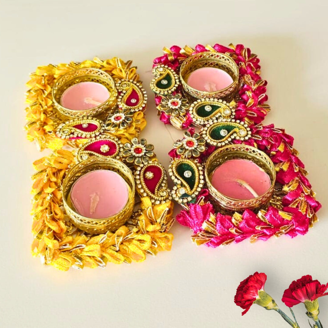 The Gota & Flower T lights pair are beautiful auspicious T Lights to make your space look classy and festive.