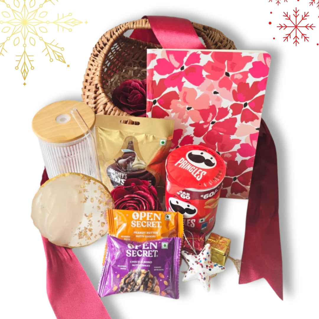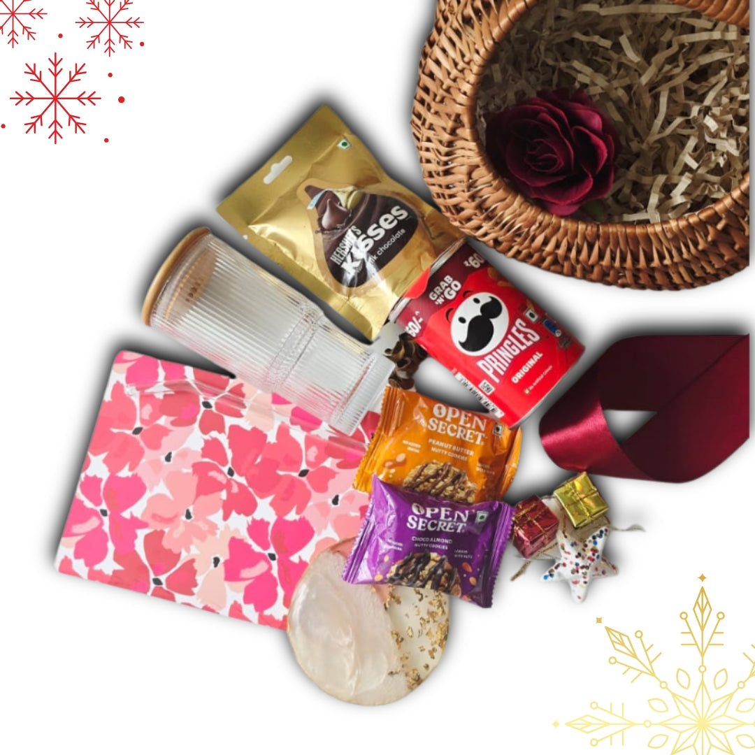 -The above contains come in a beautiful Cane Basket with handle of dimensions 28*20 cms packed with ribbons and flowers.